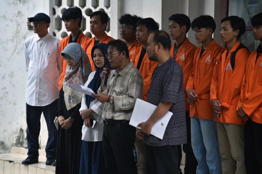 Rektor Universitas IBA Palembang Tarech Rasyid saat memimpin pembacaan ”Petisi Bumi Sriwijaya Kampus Kebangsaan Religius bertema Menyelamatkan Negara Hukum yang Demokratis, Berkeadilan, dan Bermartabat” di halaman Universitas IBA, Rabu (7/2/2024).