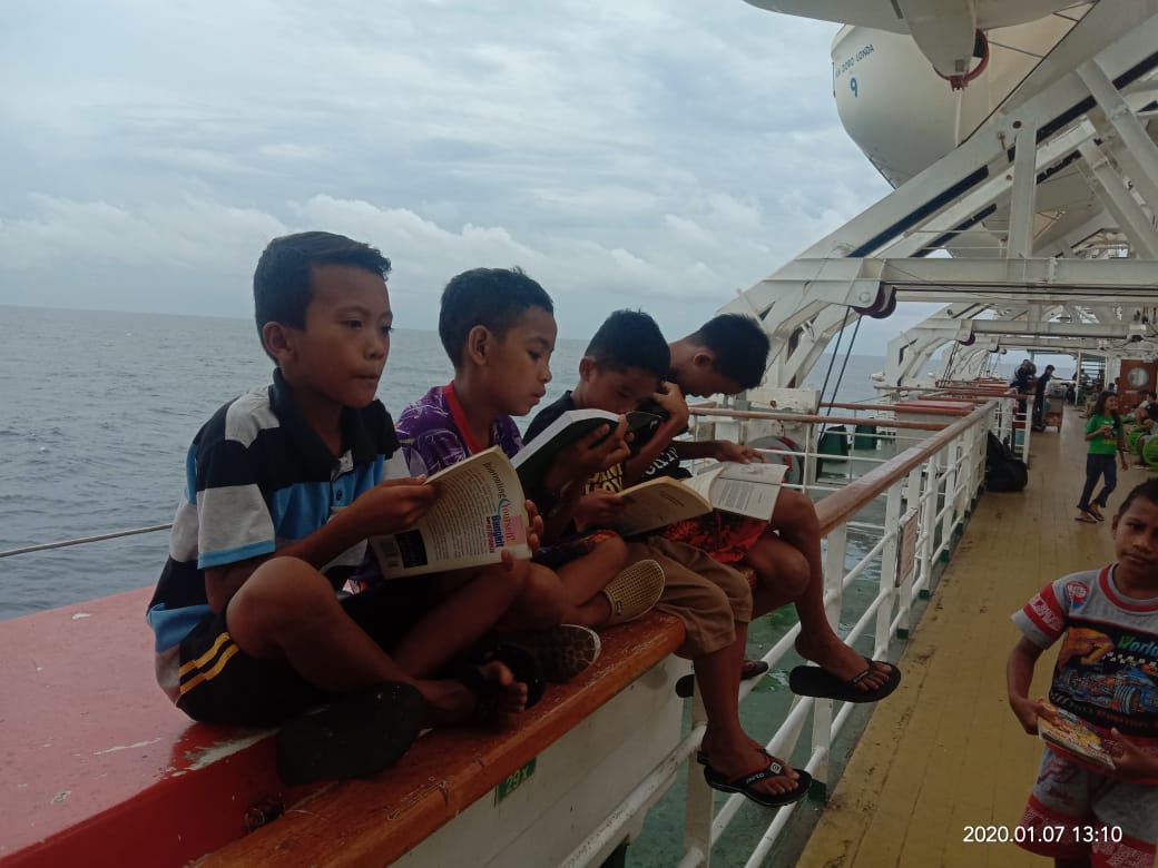 Di Kapal Lao Ode juga membuka ruang baca dan menggembirakan penumpang kapal yang terdiri dari anak-anak.Terlihat di gambar bagaimana antusiasme dan radikalnya La Ode di dalam mengupayakan tersebarnya ilmu pengetahuan.